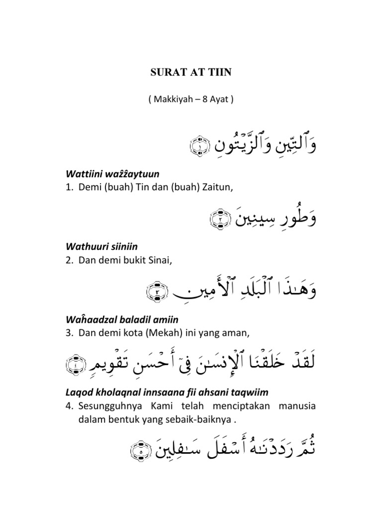 Surat At Tin Arab Latin Dan Arti Terjemahan Indonesia Lafalquran Com